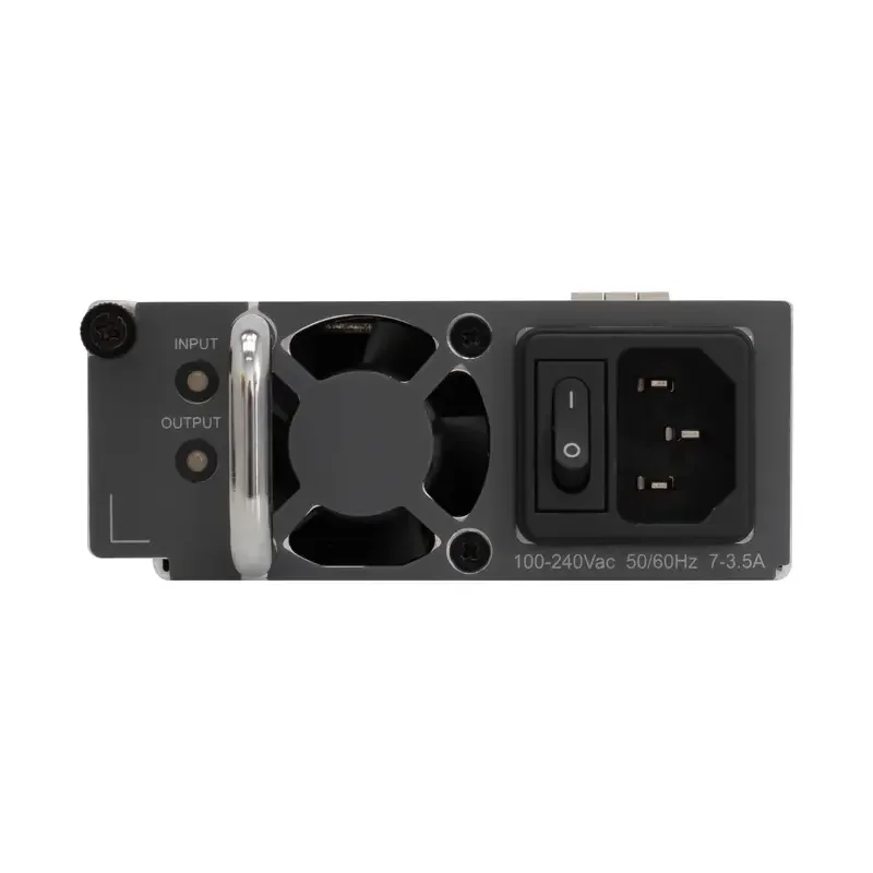 Мощность блока составляет 500 Вт, что позволяет обеспечивать питание как самого коммутатора, так и подключённых PoE-устройств, включая IP-камеры, точки доступа и телефоны.