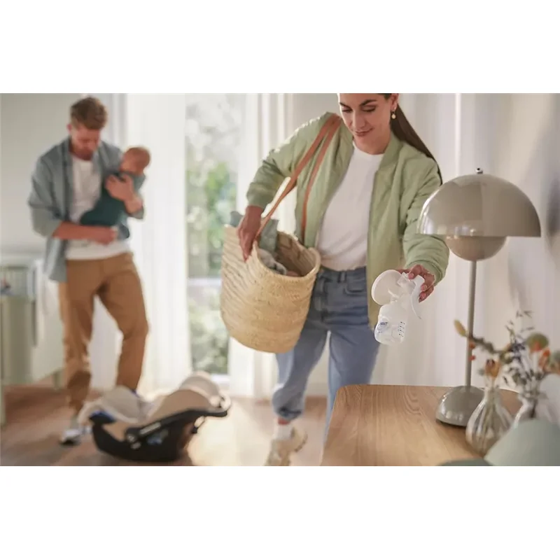 Philips Avent - ручной молокоотсос SCF441/01. Компактный и легкий для сцеживания: - В любом месте, в любое время. - Easy Express. Ручной молокоотсос Philips Avent разработан с учетом понимания принципов сосания ребенка, размеров и форм груди, поэтому обеспечивает естественное и бережное сцеживание. Универсальная насадка молокоотсоса адаптируется под любую форму и размер соска и подходит 99% мам. Естественное и бережное сцеживание. Технология Natural Motion совмещает деликатную стимуляцию соска и сцеживание, как это делает малыш. Для комфортного и удобного сцеживания. Подходит для всех форм и размеров сосков. У каждой женщины своя форма и размер сосков. Но больше не нужно подбирать насадку, потому что новая цельносиликоновая насадка бережно адаптируется под вас. Подходит для 99,98% сосков (до 30 мм). Компактный и легкий, удобно брать с собой. Благодаря небольшим размерам и легкому весу молокоотсос удобно хранить и брать с собой в дорогу. Для сцеживания в любом месте, в любое время. Быстрый приток молока. Современный портативный ручной молокоотсос - идеально подходит для мам, которым нужно бережно сцедить молоко непосредственно перед или в перерывах между кормлениями малыша. Самостоятельное управление процессом сцеживания. Самостоятельно и свободно настраивайте ритм работы молокоотсоса во время фаз стимуляции и сцеживания, чтобы обеспечить комфортный вам поток молока. Сцеживание в комфортном положении. Расслабьтесь и займите удобное сидячее положение при сцеживании - благодаря специальной конструкции насадки молокоотсос позволяет сидеть ровно, не наклоняясь вперед. Легко мыть и собирать. Небольшое количество деталей молокоотсоса позволяют без труда собирать и очищать молокоотсос.