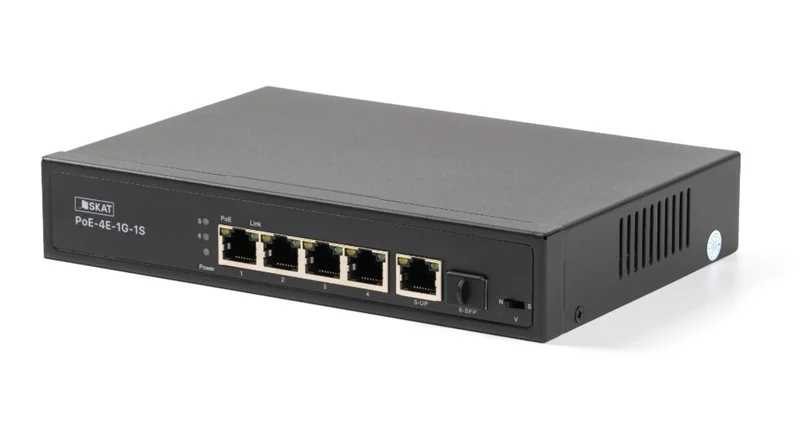 Коммутатор (4084) SKAT PoE-4E-1G-1S коммутатор PoE Plus, мощность 80Вт, порты: 4-Ethernet, 1-Uplink, 1-SFP