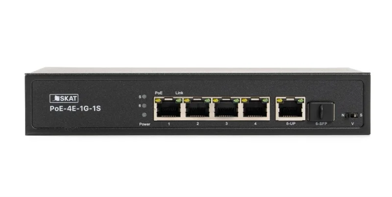 (4084) SKAT PoE-4E-1G-1S коммутатор PoE Plus, мощность 80Вт, порты: 4-Ethernet, 1-Uplink, 1-SFP