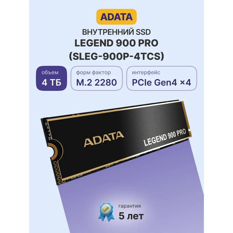 Твердотельный накопитель ADATA SSD LEGEND 900 PRO SLEG-900P-4TCS - это надёжное и высокопроизводительное решение для хранения данных, идеально подходящее для современных настольных ПК и ноутбуков.