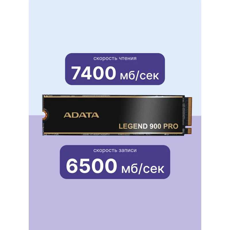 Накопитель ADATA SSD LEGEND 900 PRO поддерживает скорость чтения до 7400 МБ/с и скорость записи до 6500 МБ/с, что значительно ускоряет загрузку приложений, передачу данных и выполнение ресурсоемких задач. Это делает его идеальным решением для пользователей, которым требуется высокая производительность.