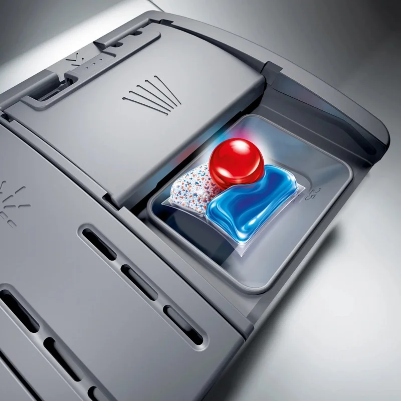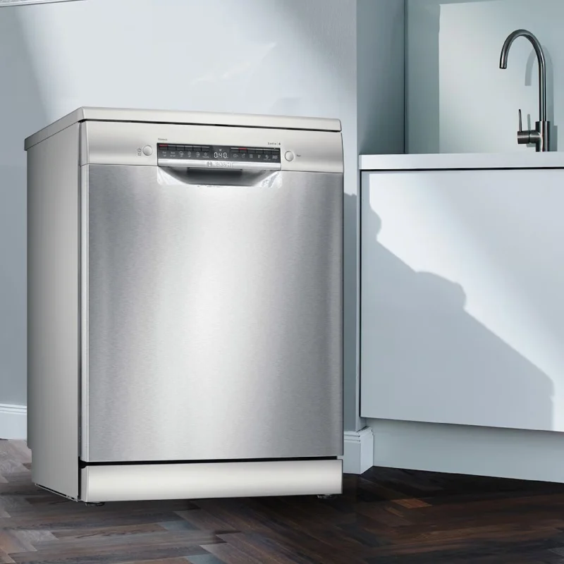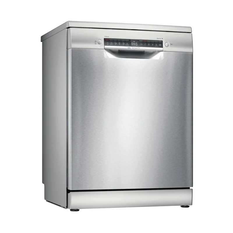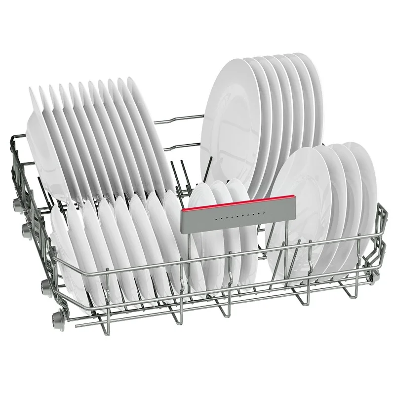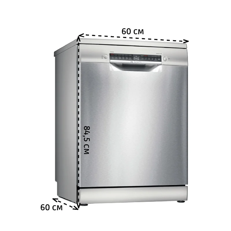 Посудомоечная машина для большой семьи Посудомоечная машина Bosch SMS4IMI62Q Serie 4 — отдельностоящая модель шириной 60 см, позволяющая за один раз очистить до 14 комплектов. Удобное размещение Для установки посуды предназначены три корзины. Расположение верхней можно легко менять, даже если она заполнена. Несколько режимов В прибор заложены шесть автоматических программ, температурный диапазон составляет от 45°С до 65°С в зависимости от типа посуды. Предусмотрены дополнительные режимы: «Усиленная гигиена» и «Половинная загрузка». Понятное управление Для выбора настроек машина оборудована электронной панелью с механическими кнопками и дисплеем. На экране отображаются этапы цикла, наличие соли и ополаскивателя. Контроль на расстоянии В Bosch SMS4IMI62Q реализована функция Home Connect — включать и устанавливать параметры работы можно удаленно. Синхронизация со смартфоном или планшетом осуществляется через модуль Wi-Fi. Экономно и комфортно Прибору присвоен класс энергоэффективности A: расход электричества за цикл составляет всего 0,951 кВт/ч, воды — 9,5 л. За счет инверторного двигателя уровень шума не превышает 50 дБ.