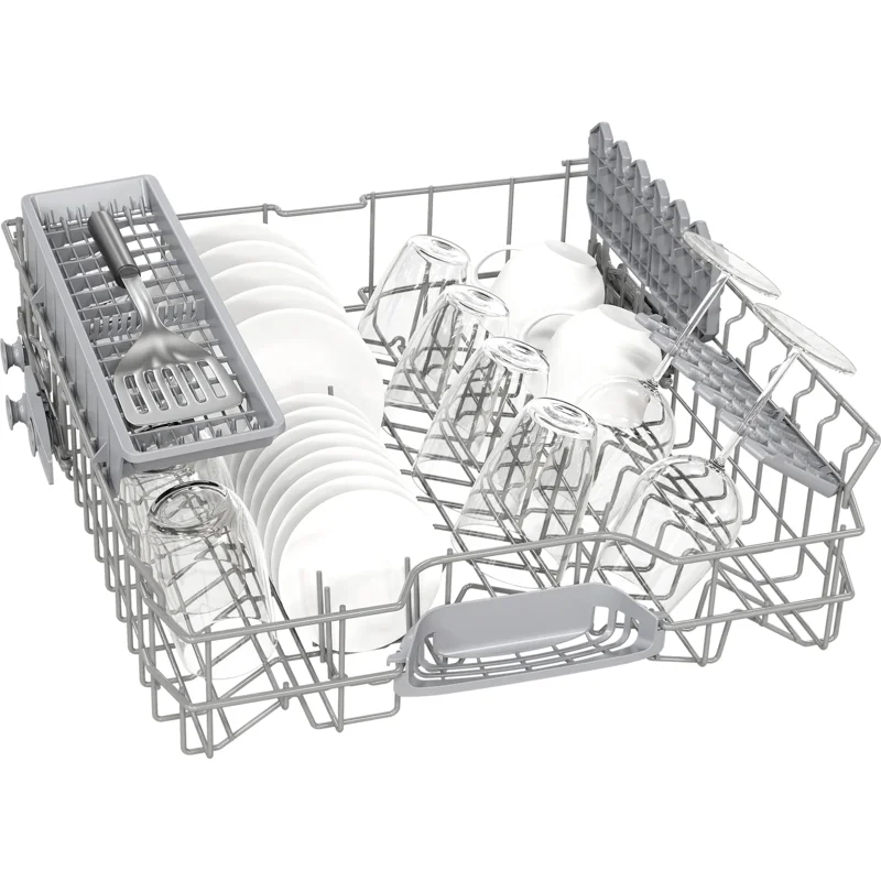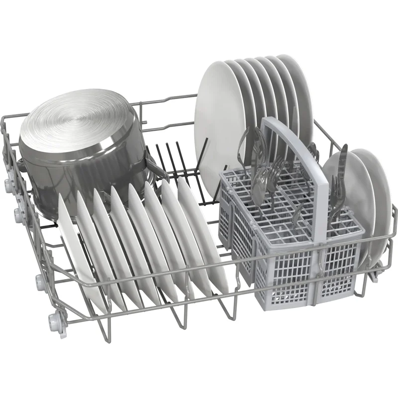 Вместительная Модель рассчитана для очищения 13 комплектов посуды, что оптимально для большой семьи. Устройство оборудовано двумя корзинами. Верхний контейнер можно переставлять по высоте, что оптимально для размещения высоких бокалов, больших тарелок, кастрюль.