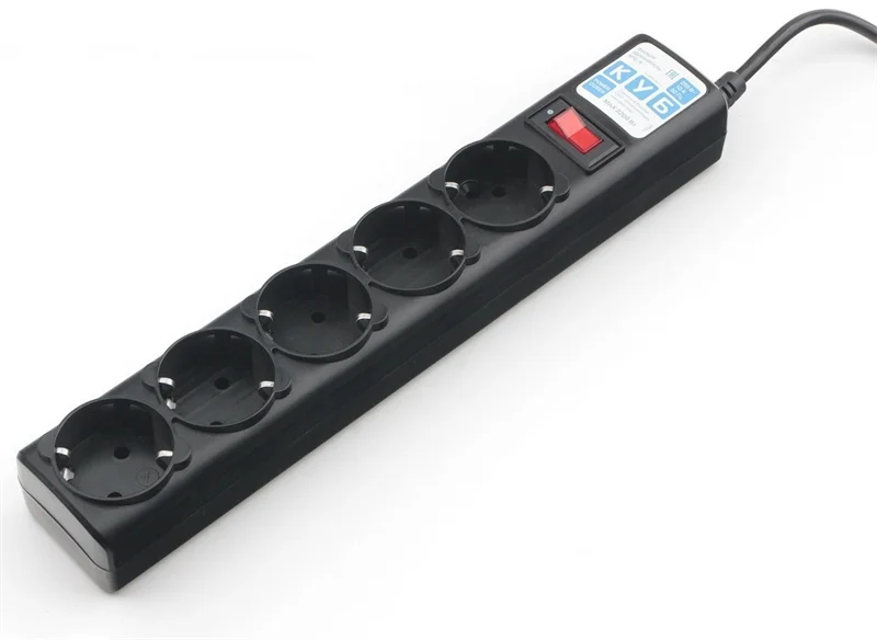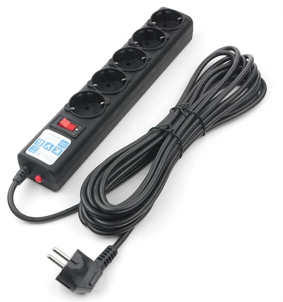 Сетевой фильтр Power Cube 10 метров, 5 розеток с заземлением, 10А/2,2кВт, Сечение провода: 3*0.75 мм, цвет черный, 4 года гарантии, Россия, МПТ