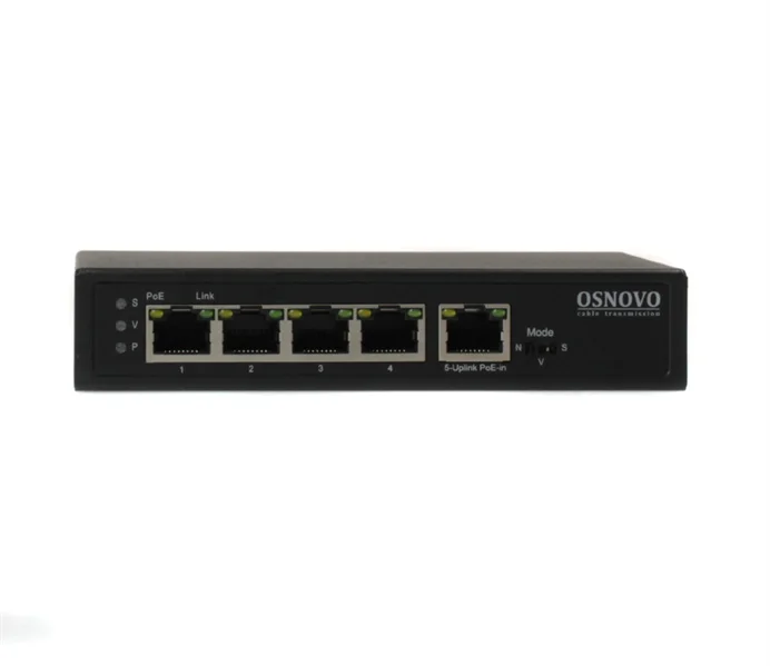 OSNOVO SW-8050/D PoE Коммутатор/удлинитель Gigabit Ethernet на 5 портов c питанием по PoE. Расстояние передачи данных + PoE - 100м. Порты: 4 х GE (10/100/1000 Base-T) с поддержкой PoE, GE (10/100/1000
