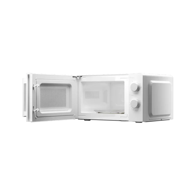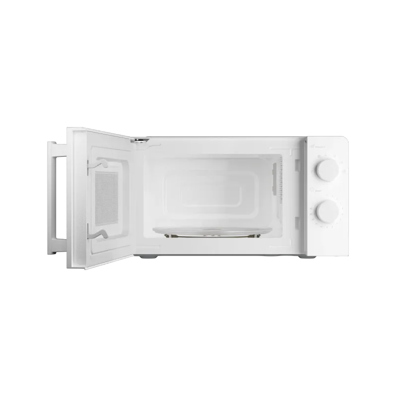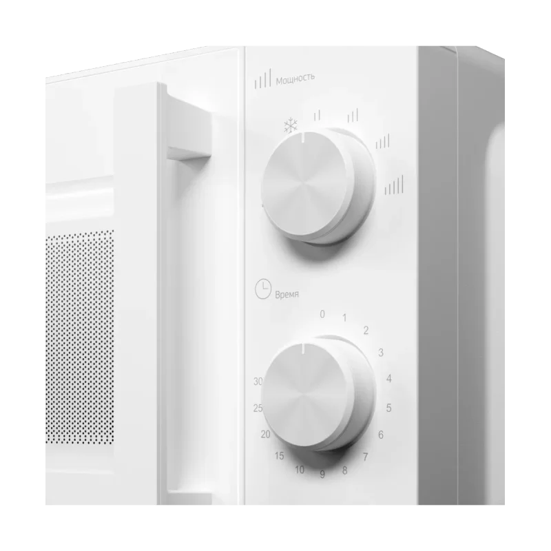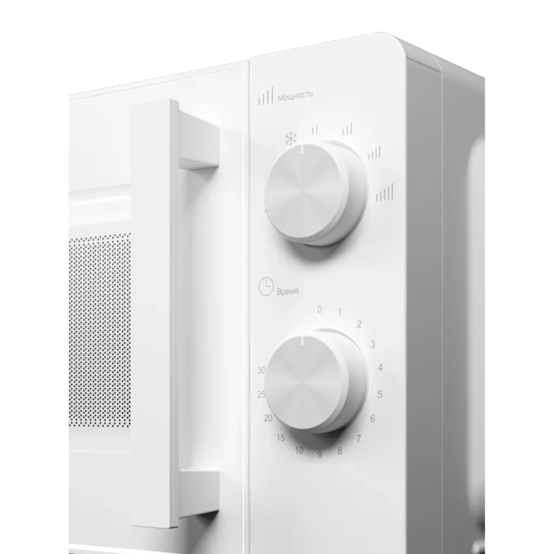 Микроволновая печь имеет объем 20 литров - достаточно для разогрева порции, приготовления гарнира или разморозки полуфабрикатов. Простая в обращении панель с поворотными ручками и четкими индикациями делает прибор понятным. Устройство оснащено пятью уровнями мощности, что дает возможность подобрать оптимальные параметры для различных типов продуктов. Мощность СВЧ составляет 700 Вт, что обеспечивает быстрый разогрев и экономию времени. Дополнительный режим разморозки предусмотрен специально для бережной обработки свежемороженых ингредиентов.