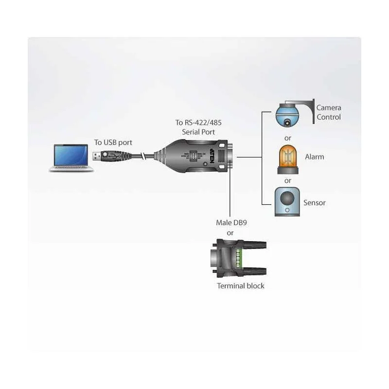 UC485-AT – USB Конвертер интерфейса ATEN UC485, высококачественный промышленный кабель-адаптер, предназначенный для мгновенного добавления порта RS-422/485 на Ваш ПК или ноутбук через USB-порт. Это идеальное решение для подключения промышленных устройств, таких как лабораторные машины, измерительное оборудование, автоматизированные системы, устройства для мониторинга и для многих других критически важных применений. Конвертер интерфейса UC485 работает в соответствии с принципом Plug-and-play, без дополнительных кабелей или сложной установки устройств. С его помощью можно подсоединить любое устройство с интерфейсом RS-485 или RS-422 к USB-порту Вашего компьютера, без прекращения работы и не испытывая проблем с вводом-выводом или драйверами. Питание адаптера осуществляется по USB-соединению, что избавляет от необходимости использования внешнего источника питания.
