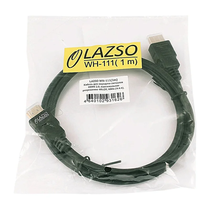 LAZSO WH-111(1m) Кабель для передачи сигналов HDMI 2.0, максимальное разрешение 4Кх2К, 60Hz (4:4:4). Круглое сечение. Тип разъёмов А-А ( вилка-вилка), 19 pin, позолоченные контакты. Сечение жил 30AWG.