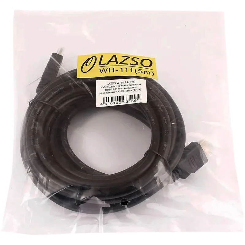 LAZSO WH-111(5m) Кабель для передачи сигналов HDMI 2.0, максимальное разрешение 4Кх2К, 60Hz (4:4:4). Круглое сечение. Тип разъёмов А-А ( вилка-вилка), 19 pin, позолоченные контакты. Сечение жил 28AWG,