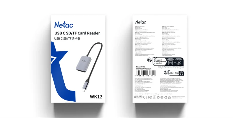 Кардридер Netac Flash card reader WK12, USB3.0 Type-C to mSD/SD (repl. NT09WK12-30GR)