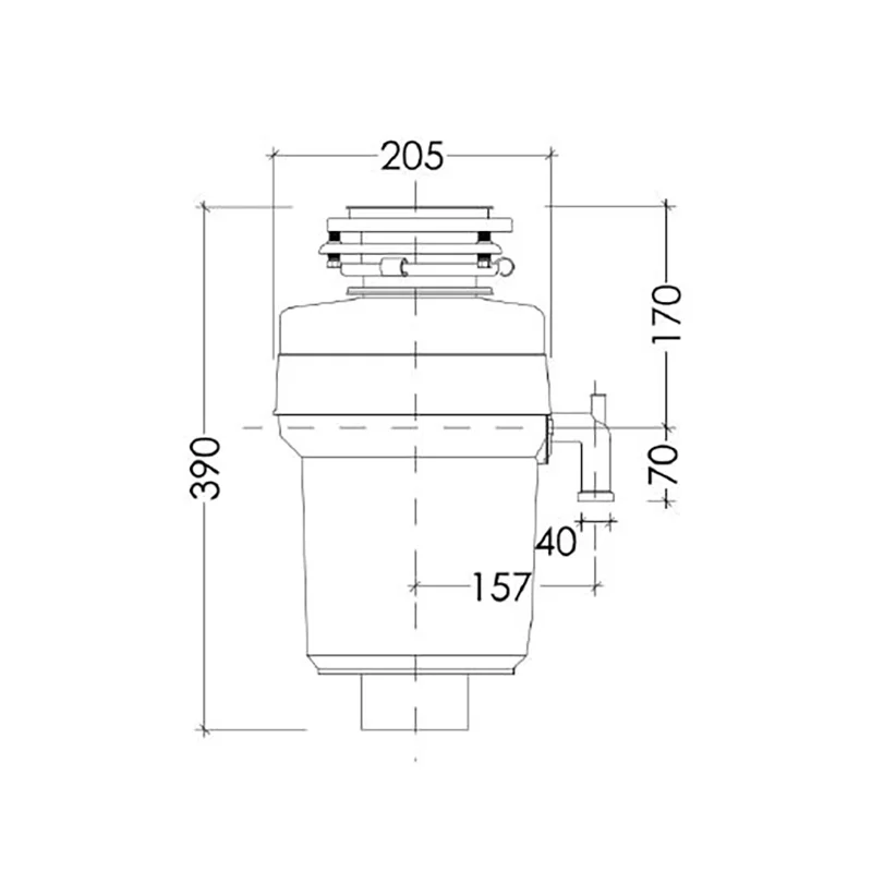 Прибор оснащен проточной системой, которая позволяет добавлять пищевые отходы непосредственно во время его работы, не прерывая процесс измельчения. Для безопасной и удобной подачи отходов в комплекте поставляется специальная крышка-толкатель. Она также выполняет функцию заглушки, закрывая сливное отверстие, когда измельчитель не используется.