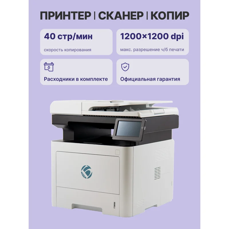 Устройство оснащено передовыми технологиями печати, позволяющими достигать впечатляющей скорости работы. МФУ поддерживает чёрно-белую печать с разрешением до 1200x1200 dpi, что гарантирует высокое качество получаемых документов.