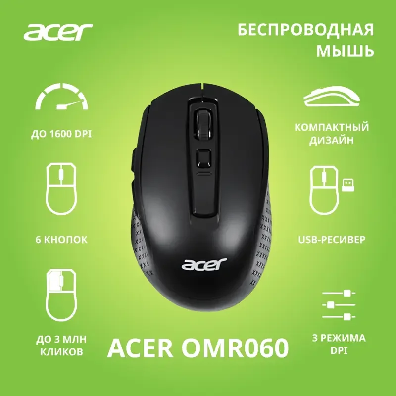 Комплектация: беспроводная мышь, батарейка АА х 1 шт., USB-ресивер, краткое руководство пользователя.